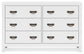Details Made with hardwood solids, okoume veneer and MDF substrates, White finish, 6 drawers with dovetail construction and metal center guides, Hardware with dark finish, Drawer interiors are lined with a wood grain laminate for a clean, finished look