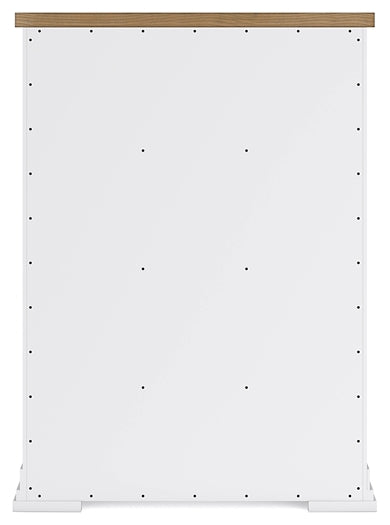 Details B844B5: Includes panel headboard, storage footboard, rails and roll slats, Footboard made with hardwood solids, MDF substrates and butcher block oak veneer, Headboard and rails made with hardwood solids and MDF substrates, White finish, Headboard with inset black metal barn sash, 2 drawers in footboard with fully finished interior, dovetail construction and ball-bearing side glides, Pulls with matte black finish, Bed does not require a foundation/box spring, Mattress available, sold separately, Assembly required, B844B1: Includes dresser and mirror, Made with hardwood solids, MDF substrates and butcher block oak veneer, Dresser with 2-tone finish (white finish; butcher block oak veneer with natural finish), Pulls with matte black finish, 10 spacious drawers with fully finished interiors (top drawers felt lined), dovetail construction and ball-bearing side glides , Drawers with inset picture fronts, Mirror attaches to back of dresser, B844-46: Made with hardwood solids, MDF substrates and butcher block oak veneer, 2-tone finish (white finish; butcher block oak veneer with natural finish), Pulls with matte black finish, 5 spacious drawers with fully finished interiors (top drawers felt lined), dovetail construction and ball-bearing side glides, Drawers with inset picture frame fronts, B844-93: Made with hardwood solids, MDF substrates and butcher block oak veneer, 2-tone finish (white finish; butcher block oak veneer with natural finish), Pulls with matte black finish, 3 spacious drawers with fully finished interiors (top drawers felt lined), dovetail construction and ball-bearing side glides, 110V power supply with dual USB charging ports, Power cord included; UL Listed, Drawers with inset picture frame fronts,