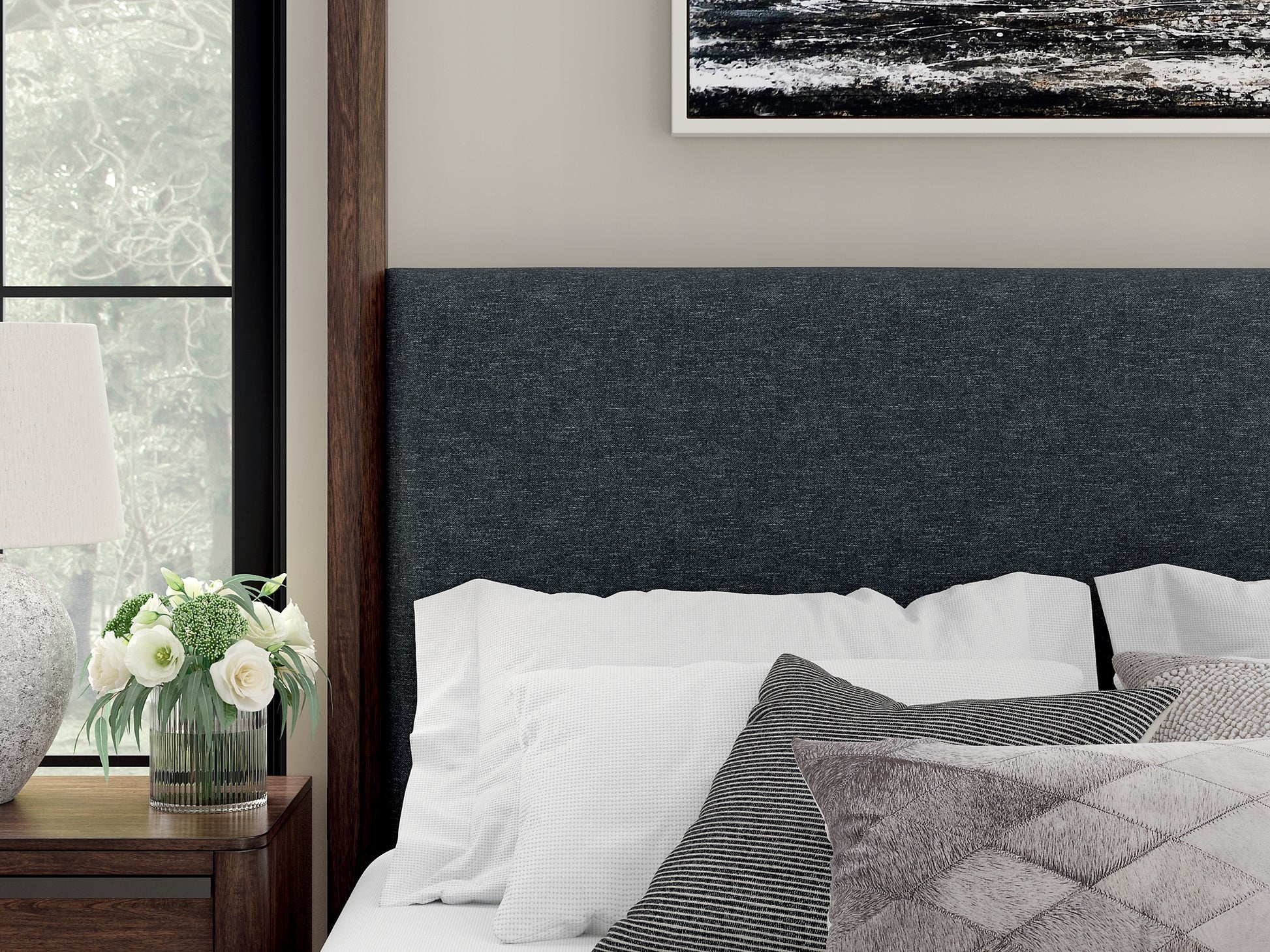 Details Includes canopy, upholstered poster headboard, footboard, rails, posts and slats, Made with hardwood solids, mango wood veneer and MDF substrates , Side rails feature laminated solid hardwood slat support rails (or LVL) with glued and screwed blocking for added strength, Complex, rich dark brown finish, Foam headboard cushion with polyester upholstery , Measure room, including ceiling height, to ensure bed clears fans and light fixtures, Foundation/box spring required, sold separately , Mattress available, sold separately , USB-A and USB-C charging ports, Power cord included; UL Listed, Assembly required